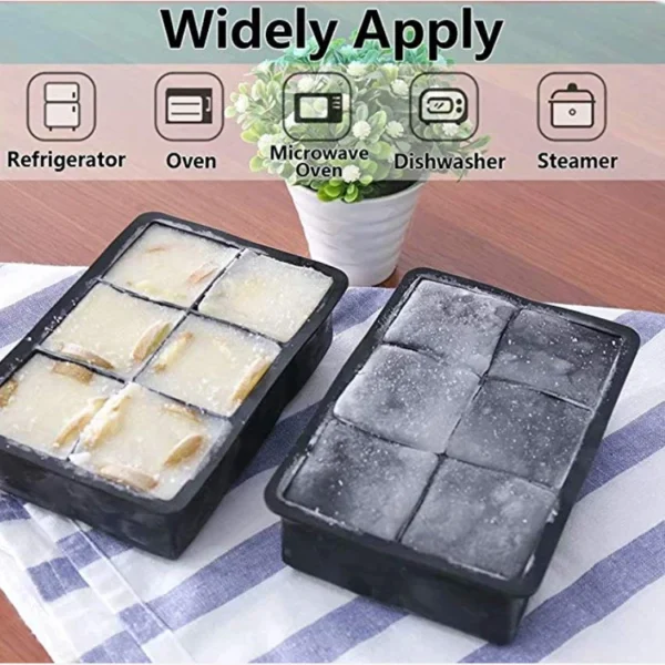 6 Cavity Wholesale square Jumbo Large Personalized Custom logo Printing Crystal clear Ice Maker Mold Silicone Ice Cube Tray